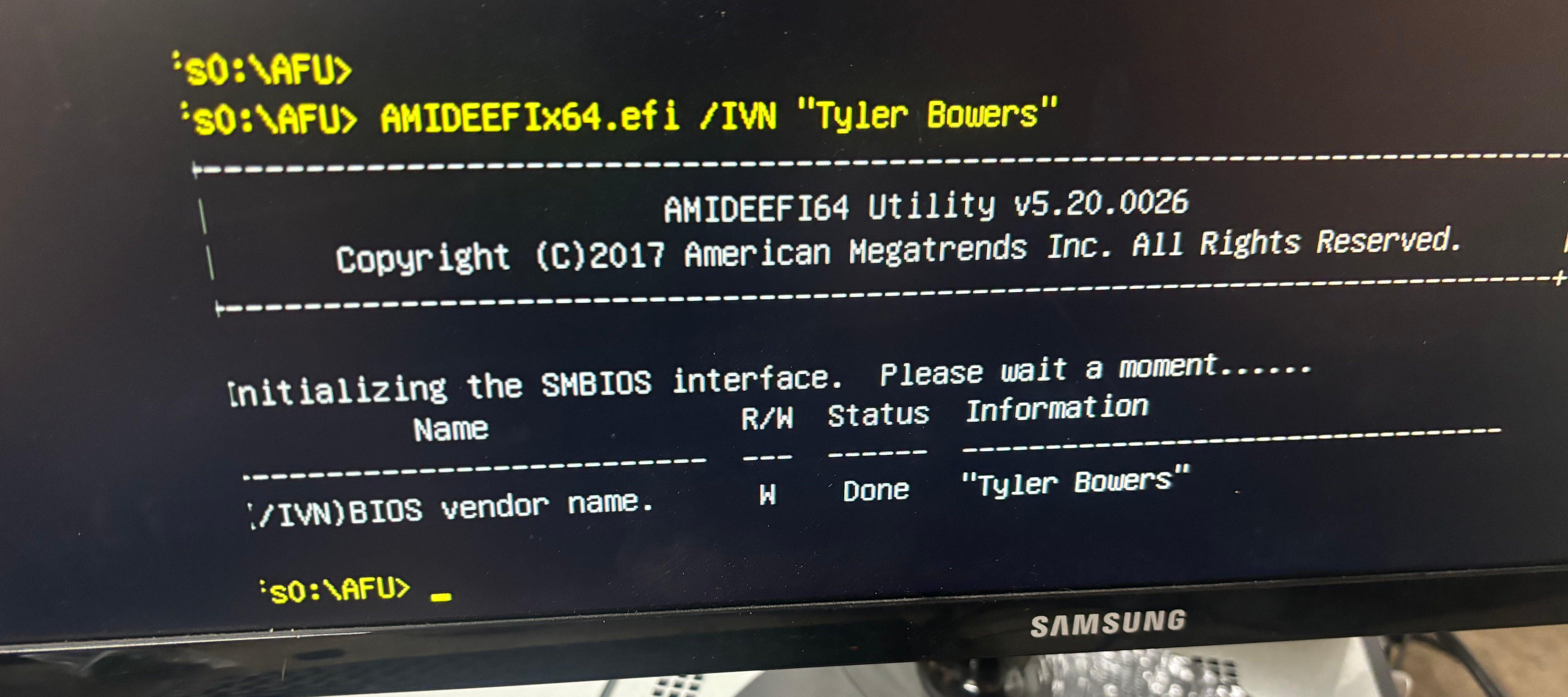 - AMIDEEFIx64.efi /IVN "your vendor name" | to set the vendor name.