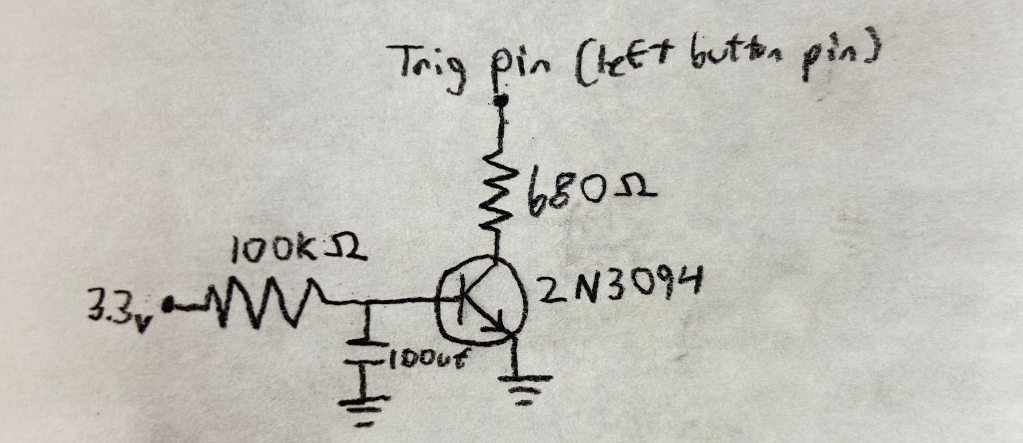I also wanted to move away from the original Sonotone 8TA cartridge. I upgraded to the Audio-Technica AT-VM95e, but since this is a moving magnet cartridge, I had to add a phono preamp. I considered the Schiit Mani 2, but I went with the Fosi Box X5, since it's cheaper and was rated higher. The downside was that the Fosi did not have a power switch and instead had a button. So I had to build a circuit that would automatically power it on when power is connected. It uses an RC delay to turn on a transistor and bring the trigger pin low. I also added a diode to discharge the capacitor when the unit is powered off based on a fourm recommendation.