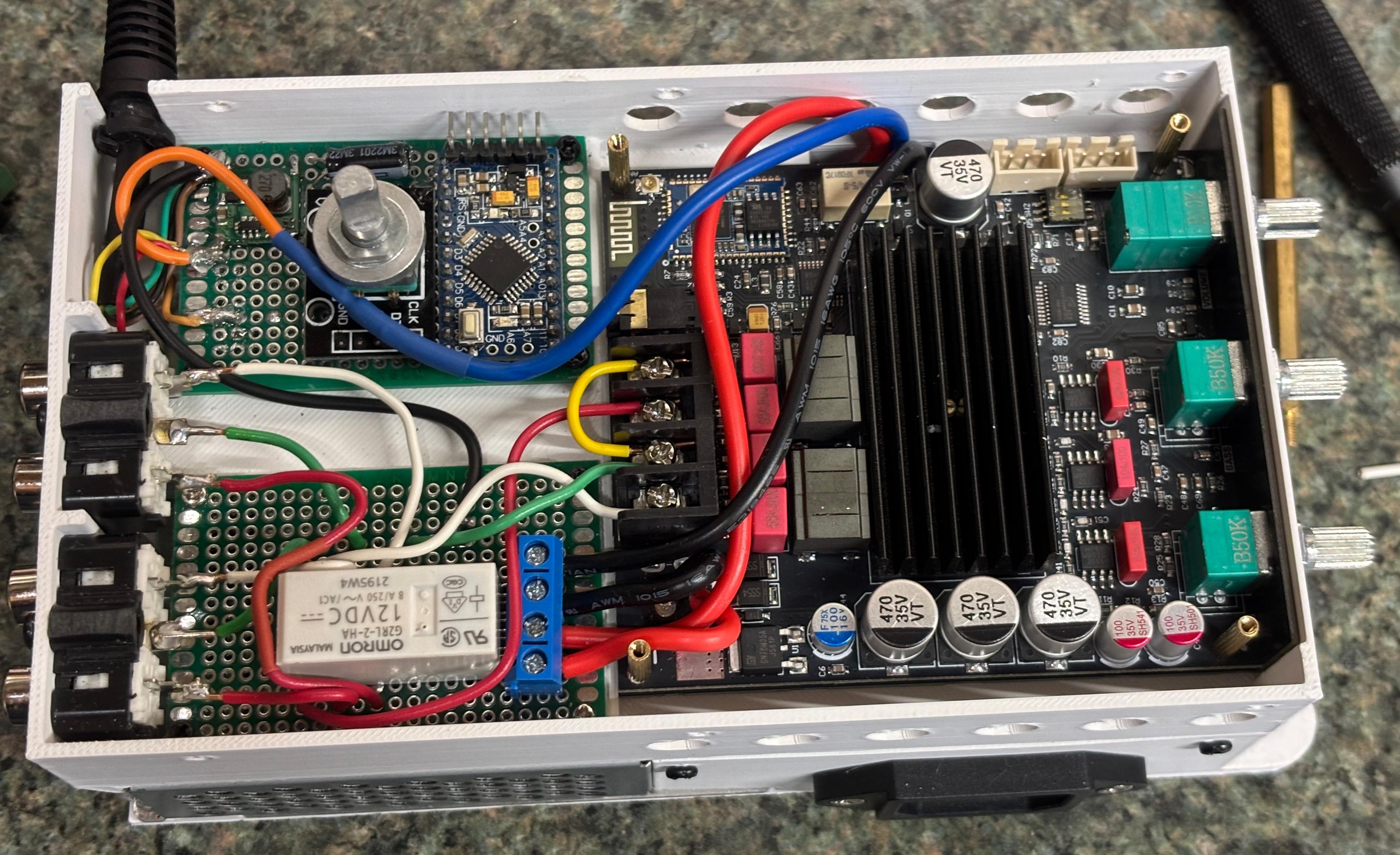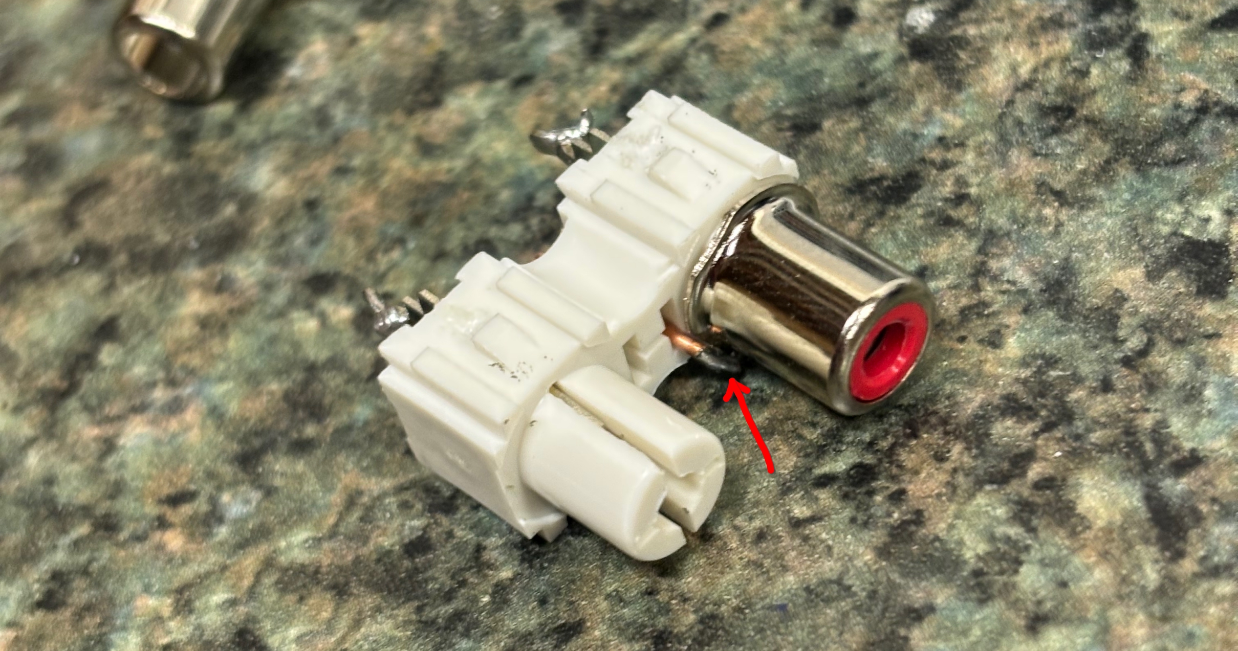 I then found out that the amplifier is a bridge-tied load design (it's a cheaper design) so I couldn't tie the grounds together when I'm audio switching. To fix this I had to add an additional relay that bridges the left and right channel grounds when it's in jukebox mode and unbridges them when it's in Bluetooth mode. I also had to modify the RCA plugs so that they could have separate grounds.