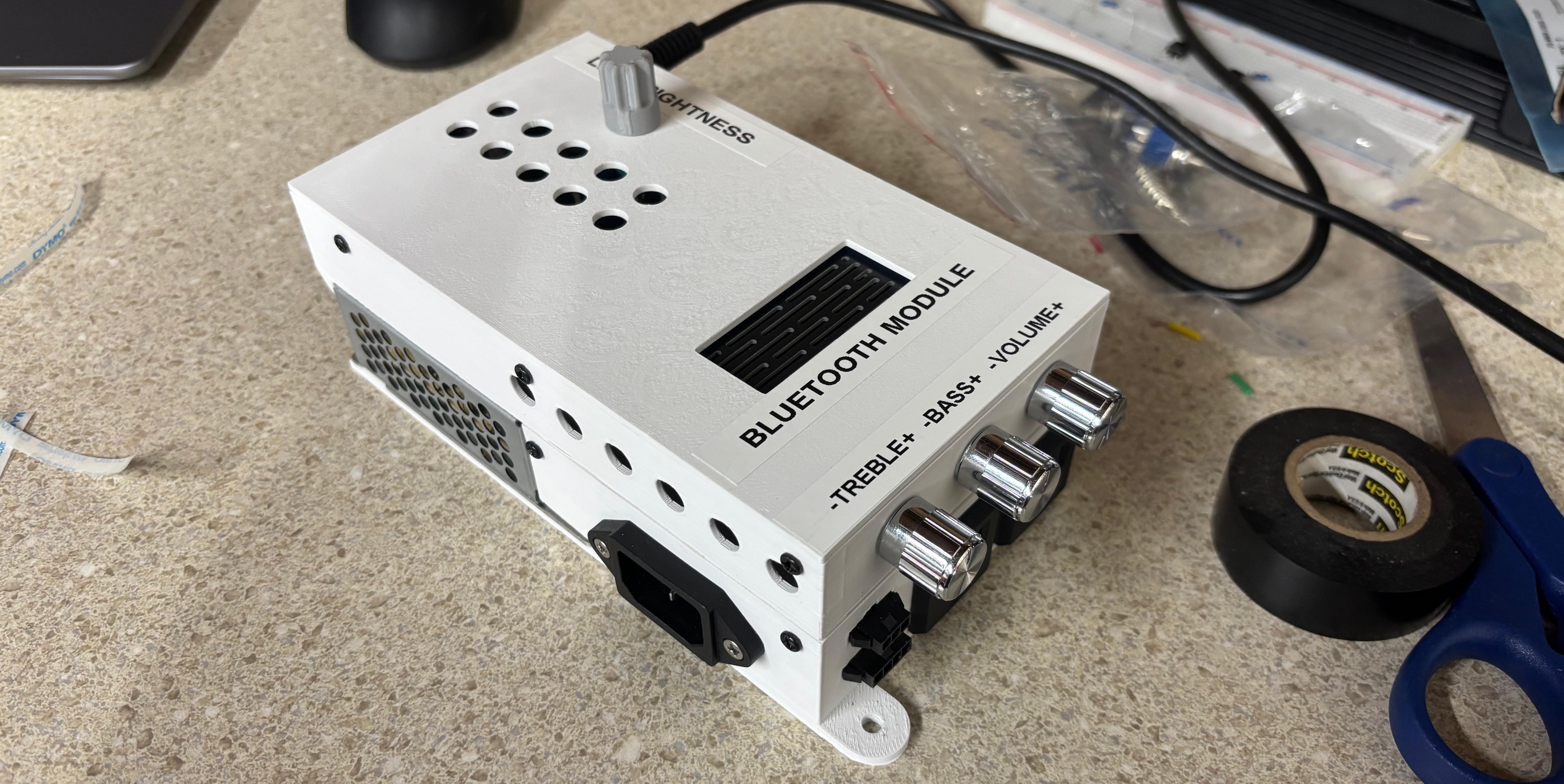 My Bluetooth module and power switching fits tight inside the 3D printed enclosure: