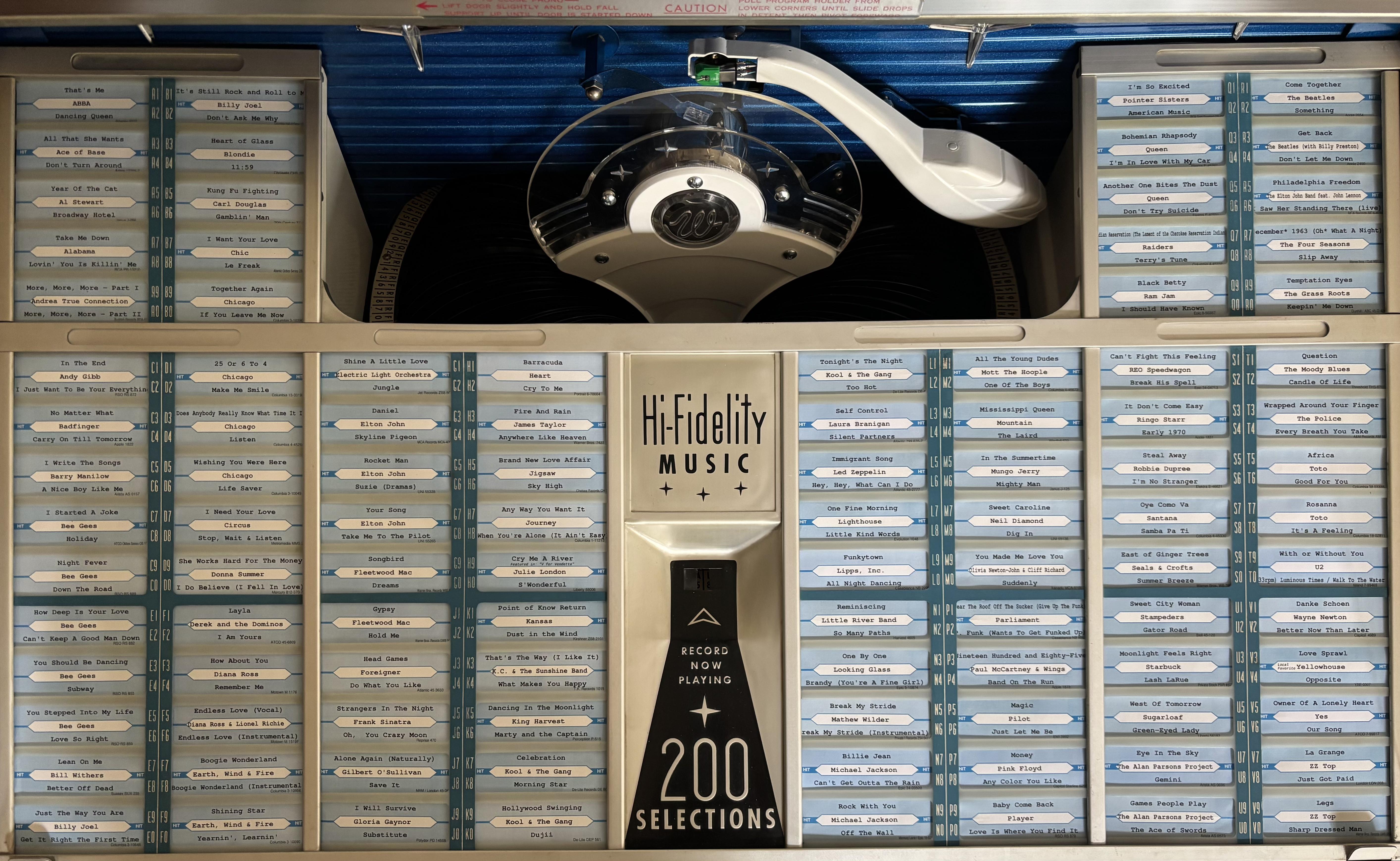 On August 9, 2025, I bought the jukebox in Akron, Ohio for $1,000. The seller had picked it up at an estate sale around 2021 intending to restore it but never got to it. The sale included replacement glass sides, the service manual, 100x 45rpm records (a good selection) and some tubes (though only one 12AX7).